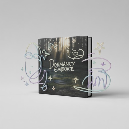 Neuroneti: ideograph.ai, recraft.ai, State Diffution, Krea.ai Prompts: Merch — Mockup of merchandise it on a white white background, no shadows, realistic 8K photo style. Hand-drawn pencil effects, soft pastel colors, magical glowing floors and sparkles arond the design. Floating whimsical goods inspired by the album Dormancy Embrace. Dark long-exposure forst subtlely reflected in glowing instruments, Dreamy and serene atmosphere, soft texts, visually taking merch presentation. The cassette is Mockup of Cassette tape and case on White Background, realistic 8K, no Shadows. Pastel hand-drawn pencil aesthetic with global magical inputs: stars, sparkles, whimsical woods. Dark forest long-exposure blur subtly in background patterns. Dreamlike, cozy, aesthetically anignified with Dormancy Embrace, soft cinematic texts, cute and serene vibe. CD CD: Mockup of CDs and its packaging on White Background, realistic 8K photo style, no shadows. Hand-drawn pentel pincil style, glowing magical woods and stars arond the secret. Dark long-exposure forest softly integrated in the work. Whimsical drifting effects floating around, soft other lighting, serene and emotively expressive mud. The vinyl record is Mockup of vinyl record packaging on what background, realistic 8K, no shadows. «Pastel pencil willustratation style overlay, „glowing magical effects like stars, Tiny sparkles, and whimsical dodles. Dark long-exposure forest closely seggested in the design. Dreamy, serene, aesthetically coherent with the album Dormancy Embrace. Soft Cinematic Lighting, delicate texts.