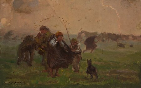 «Перед штормом — эскиз к картине „Буря“» Юзеф Хелмоньский 1896; «Буря» Юзеф Хелмоньский 1896