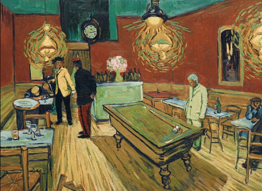 Не менее важное произведение — «Ночное кафе». Ван Гог изобразил привокзальное кафе города Арля, которое было ему хорошо знакомо.