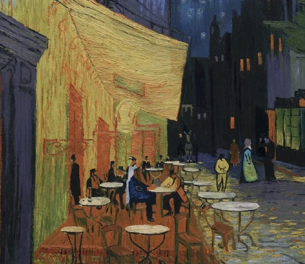 «Терраса кафе ночью» Винсент ван Гог 1888; Кадр из фильма «Ван Гог. С любовью, Винсент» 2017
