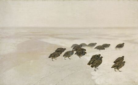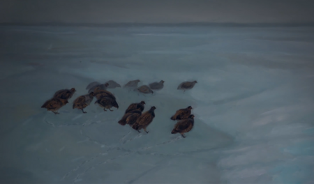«Куропатки на снегу» Юзеф Хелмоньский 1891; Кадр из фильма «Крестьяне» 2023