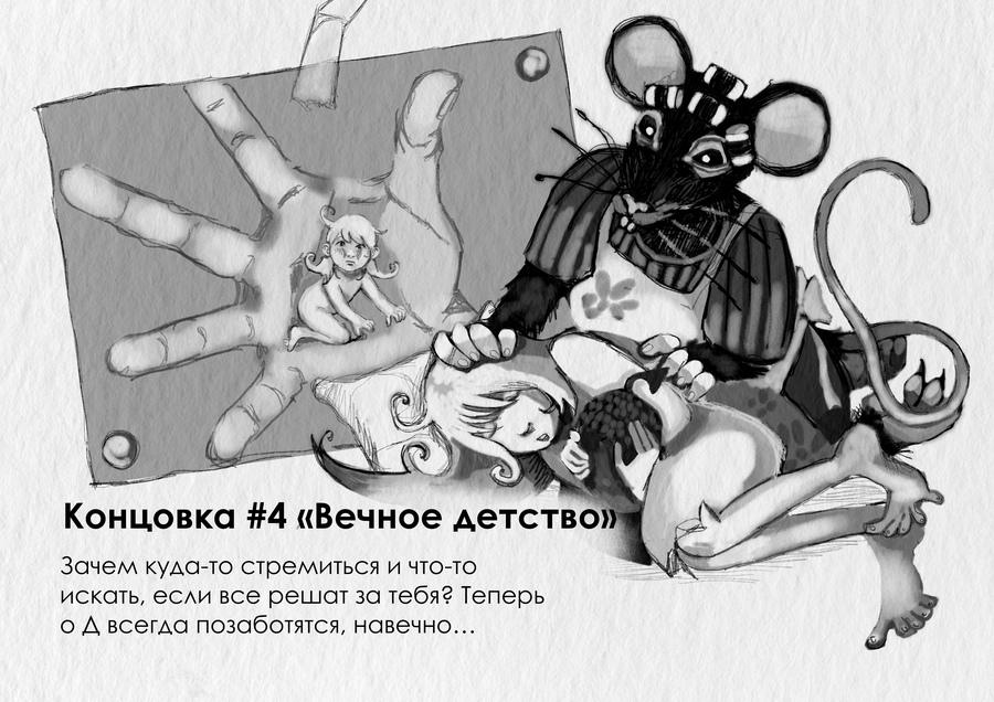 Но тетя Мышь, Крот и Жаб знают, как девушке будет лучше! Вместе они сыграют в свою версию игры камень, ножницы, бумага, чтобы определить судьбу Д!