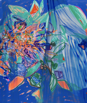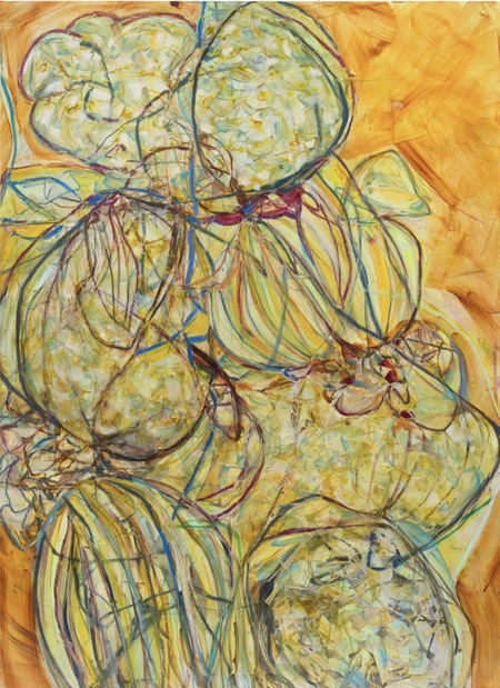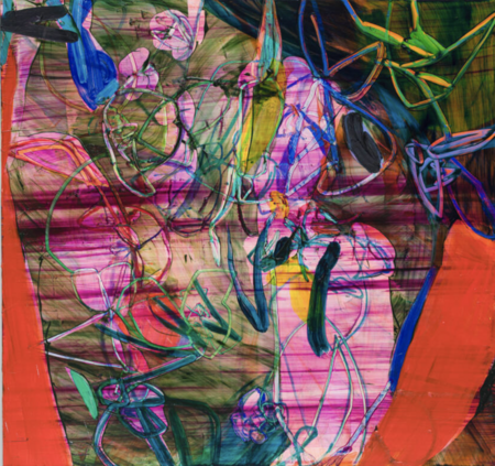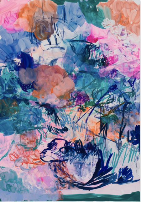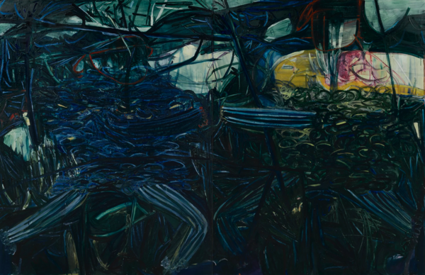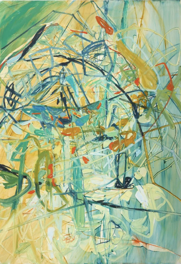 1. Персональная выставка «Can we see the colour green because we have a name for it?» в галерее Hepworth Wakefield. 2022. 2. Woven Futures. 2022. Холст, акрил, масло, масляна пастель. 169,8×180.2 см