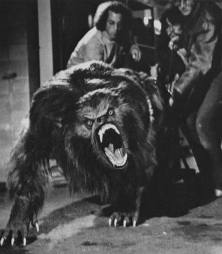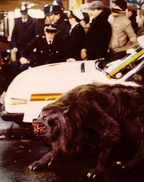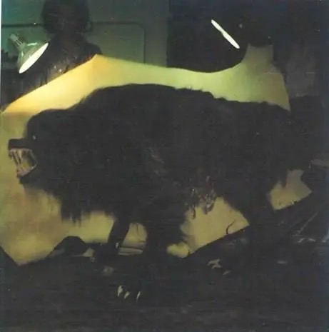 В итоге на тележку поставили зверя, который сочетал в себе костюм верхней половины оборотня и тележку для нижней половины, с наклонной доской. Конструкция имела шарнирную талию, что позволяло естественным образом поворачиваться из стороны в сторону. Актер залезал в куклу и мог управлять передними лапами. А голову снятую крупным планом надевали на руку и могли открывать и закрывать челюсти монстра. Из- за специфики оборотня, приходилось снимать только с определённых ракурсов.