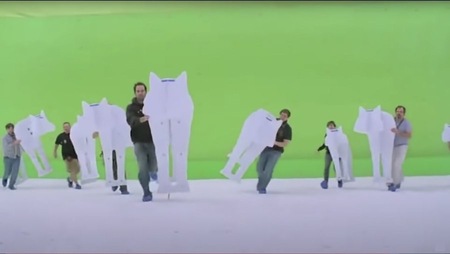 Когда необходимо было снять кадр, где стоит стая волков, то использовали пластиковые статуэтки. Этот прием в дальнейшем помогал при наложении эффекта, более реалистично отрисовать волка в лесу.