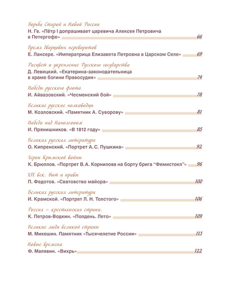 Историю можно изучать по-разному: читать учебники, смотреть фильмы. Автор этой книги, искусствовед, сотрудник Русского музея, Алла Кононова, предлагает смотреть картины, изучая одновременно историю нашей страны и живопись. Победы и быт, славные эпизоды истории России, деятели политики и культуры увековечены в картинах и скульптуре. Вы увидите здесь произведения Сурикова, Репина, Кипренского, Айвазовского и других художников. Издание призвано повысить эрудицию у детей и взрослых, а главное — заинтересовать историей страны и воспитать патриотизм и любовь к искусству у читателей.