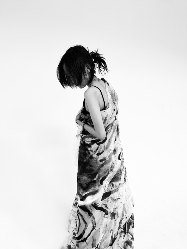 Используя художественную технику каллиграфии в качестве основы, была приглашена сама художница, которая рисует полотна черной тушью. В ее черном наряде азиатского стиля она слилась с произведением и передала состояние, которое испытывала во время творчества. Фотографии, иллюстрирующие это, захватывают статичные и эмоциональные моменты модели, а черно-белая тонировка усиливает контраст и добавляет художественный шарм. В них кажется, что модель стала самой кистью, которая оживляет полотно.