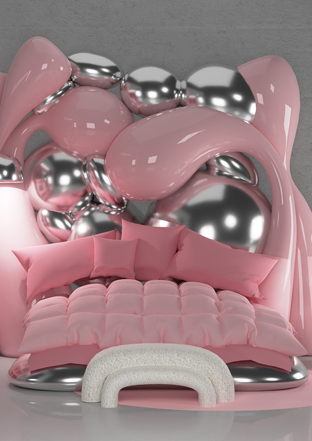 Витрина в виде современной спальни для MORФEUS — бренда постельного белья и спальных принадлежностей. Основа проекта — опора