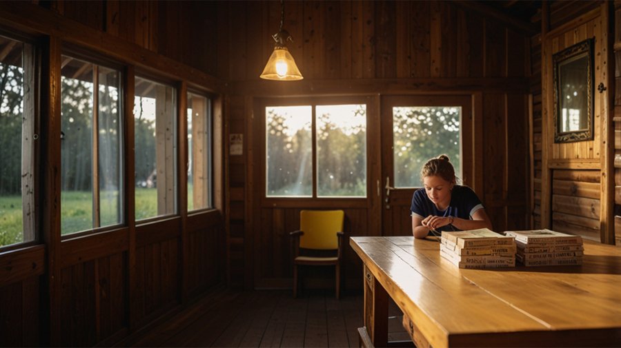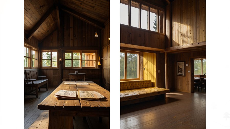 Промт для кафе в leonardo: an indoor photo in a wooden house with natural lightning, a person is selling tickets, the background is low detailed with wooden texture and yellow accents Промт для тропы в леонардо: a realistic photo of an empty tourist route with a wooden road, natural lightning