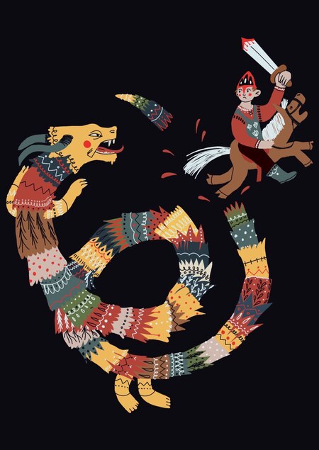 Серия иллюстраций, совмещающих китайских драконов и русскую народную роспись.