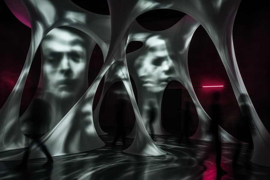 Личность становится фрагментированной, реагирующей, текучей. Каждый новый цифровой контакт — это микровзрыв идентичности. Проект исследует этот процесс: как множественные версии «я» рождаются, распадаются и сливаются в результате взаимодействий внутри цифровой среды.