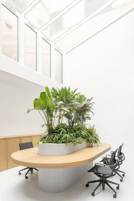 В одном из архитектурных бюро Палермо использовали минималистичную функциональную мебель, которая не выбивается из общей концепции и не отвлекает, формируя единую среду. Когда мы находимся в месте, где все лаконично и имеет единую стилистику, то лучше концентрируемся, не отвлекаясь на визуальный шум. Здесь мы способны ощутить спокойствие, уединение, что будет положительно влиять на продуктивность в течение рабочего дня.