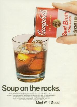 Слева: Рекламный постер campbells от Дэвида Огильви 1950-е годы. Справа: Рекламная кампания бренда Hathaway, придуманная Дэвидом Огилви 1950-е годы.