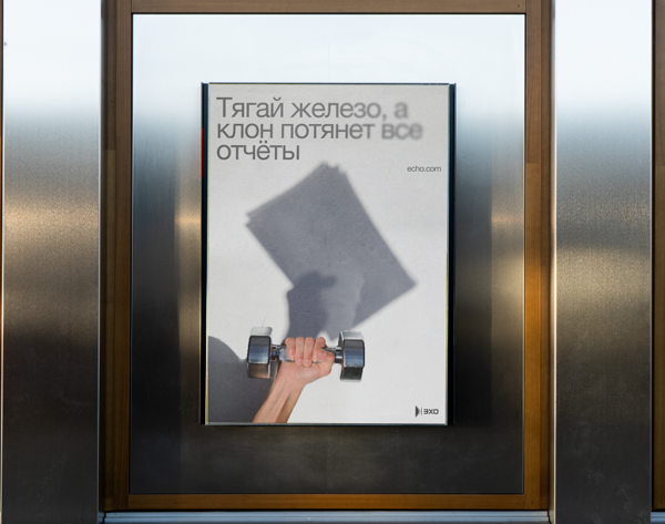 В качестве основы для итоговой компании была взята метафора тени человека, играющая на визуальном контрасте и создающая ощущение присутствия. Этот приём стал основой визуальной кампании, а к нему добавился говорящий с человек текст, и эффект blur к одной из сторон, играющий на метафоре эха, как чего-то постепенного и продолжительного, растянутого.