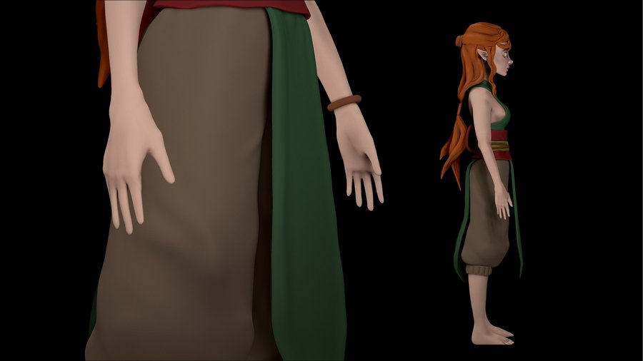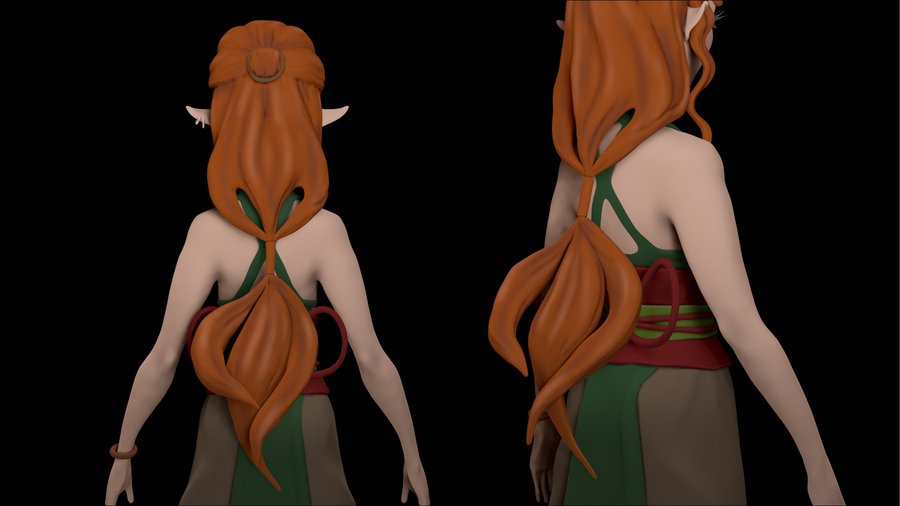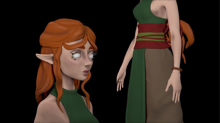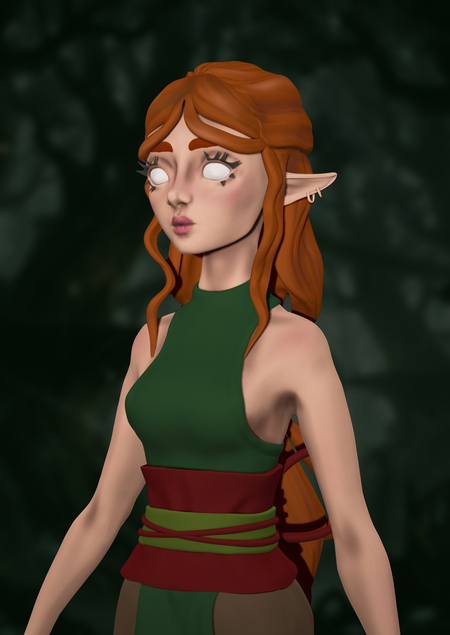 Среди вековых деревьев живёт эльфийка-шаман. Ее взгляд лишён зрачков, ведь она видит то, что скрыто от других. Рыжие волосы напоминают огонь, а голос способен усмирить даже бурю. Она ведёт беседы с духами и оберегает тайны леса.