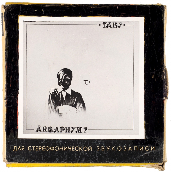 Вопросительный знак после названия группы на обложке альбома «Табу» (1982) — одно из самых символичных и обсуждаемых решений ленинградской рок-среды. На обложке не просто «Аквариум», а «Аквариум?» — и это не случайная опечатка, а вполне осознанный жест, отражающий напряжённое состояние коллектива и атмосферу ленинградской сцены начала 1980-х. На фоне этой нестабильности оформление альбома «Табу» оказалось особенно выразительным. Андрей «Вилли» Усов создаёт образ, который одновременно выглядит минималистичным и напряжённым. Холодные контрасты, нарочитая простота макета, отсутствие декоративных деталей — всё это подчёркивает внутренний разлом, о котором говорит и вопросительный знак в названии.