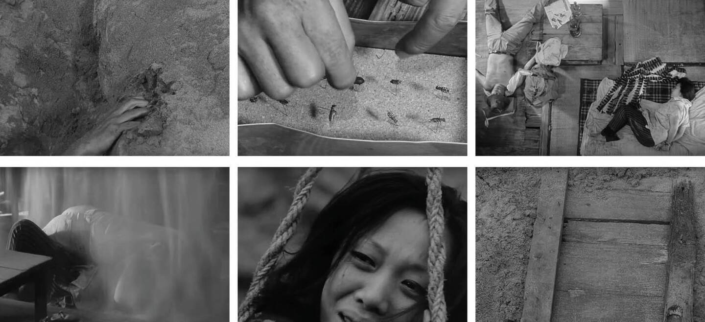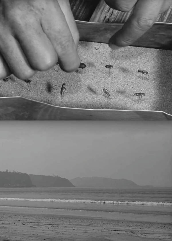 Песок в фильме — не просто природный элемент, а метафора времени, его непрерывного потока и изменчивости. Он постоянно меняет облик окружающего пространства, заполняет трещины, скрывает и раскрывает объекты. Эта изменчивая и несовершенная материя буквально воплощает sabi — красоту следа времени, старения и трансформаций.