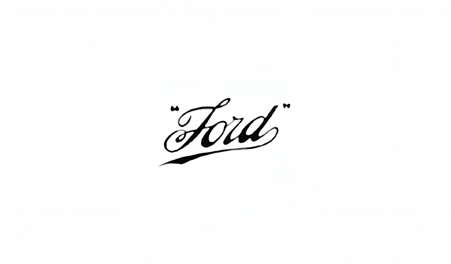 Изначально логотип Ford представлял собой узорчатую рамку с надписями внутри. В 1909 году знаком компании стала каллиграфически выведенная фамилия основателя. Эта надпись стала основой для вариаций логотипа, но была изменена и помещена в синюю рамку. Рамка несколько раз меняла форму, пока не стала такой, какая она есть сейчас.