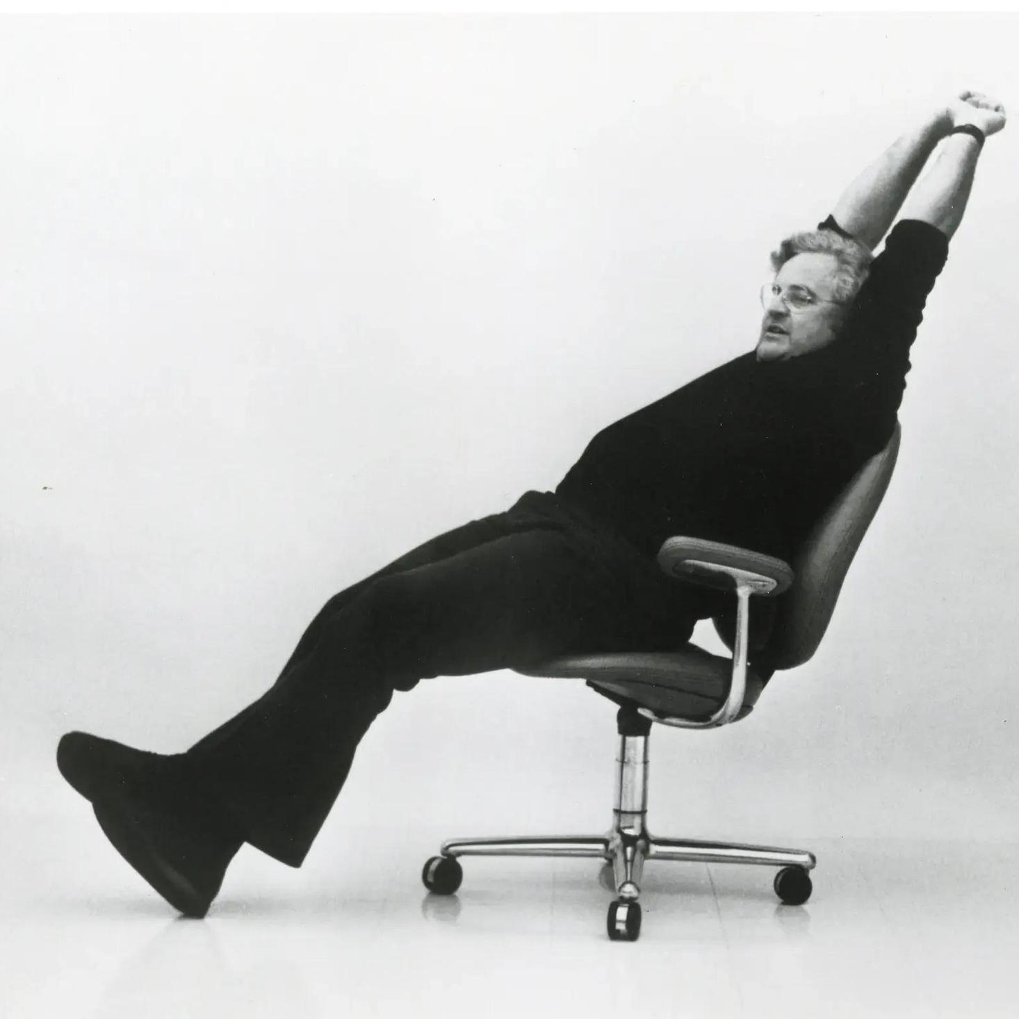 Билл Стампф в рекламной съемке кресла Ergon Chair. 1976 г.