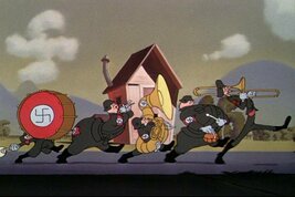 Кадр из «Der Fuehrer’s Face» (1943). Дональд как политическая сатира. Кадр из «Der Fuehrer’s Face», Уолт Дисней, США, 1943.