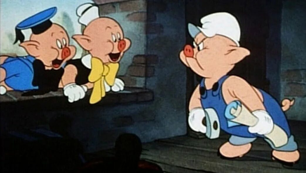Три поросенка из одноименного мультфильма (1933). Создание запоминающихся групповых динамик. Кадр из «Трех поросят», Уолт Дисней, США, 1933.