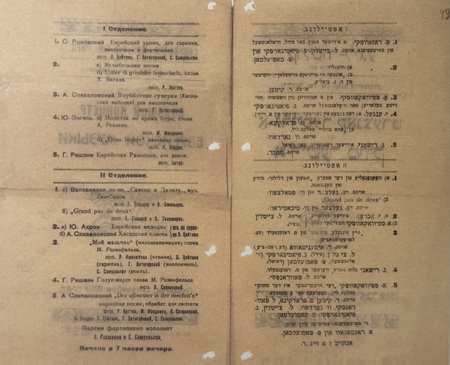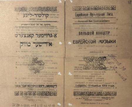 Программа концерта «Еврейская Культурная Лига. Большой концерт еврейской», 1919. Государственный архив РФ. // В кн.: Еврейский авангард. Шагал, Альтман, Штеренберг и другие. — М.: Еврейский музей, 2024.
