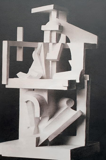 Художника интересует не индивидуальность модели, а логика строения формы: фигуры собираются как механизмы, они многоракурсны, лишены орнамента и работают как исследования объёма. Такой подход стал фундаментом педагогики ВХУТЕМАСа, где аналитическая скульптура использовалась как метод обучения пластике, подобный аналитическим моделям архитекторов.