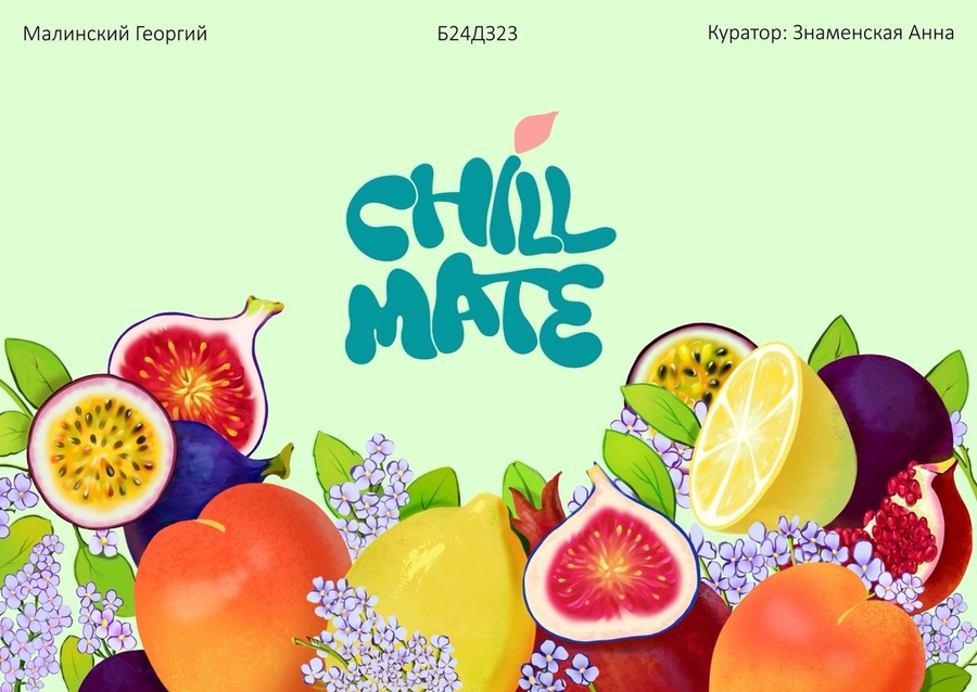 Promt: Create a cover for a coffee brand. taking into account the color palette in the provided image and taking into account the visual style. in this image. Focus on the quality of the product and the natural ingredients. use the same font as in the title (Chillmate)