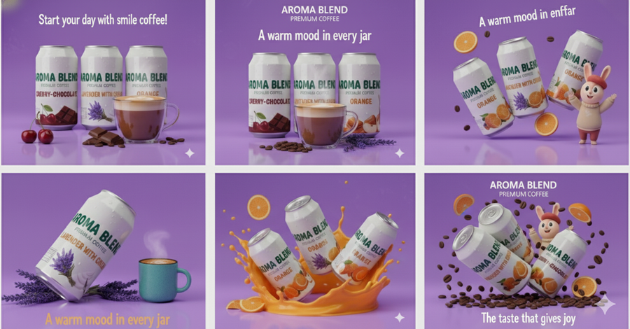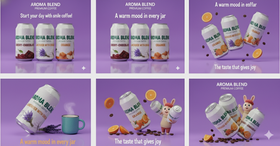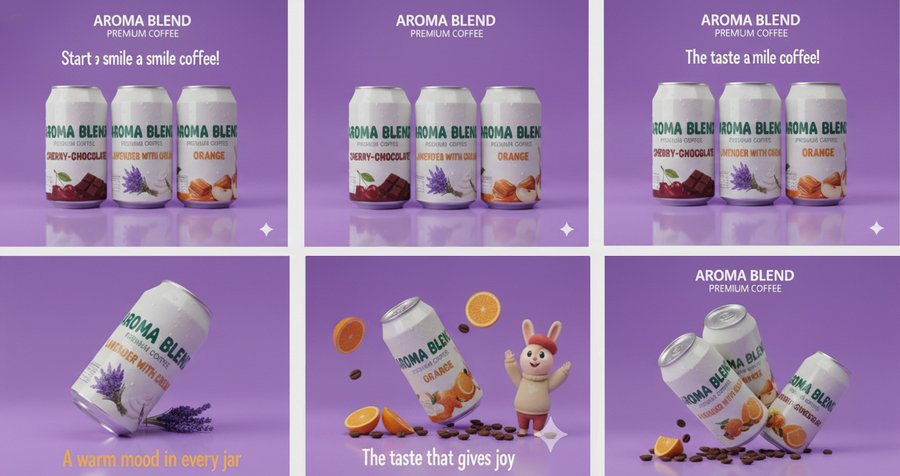 Aroma blend- создаём ароматные напитки, объединяющие вкус, уют и эмоции, с фирменным маскотом-зайцем — символом заботы и любви к кофе. Каждый продукт отражает атмосферу бренда: тёплую, дружелюбную и вдохновляющую, превращая кофе в часть повседневного счастья.