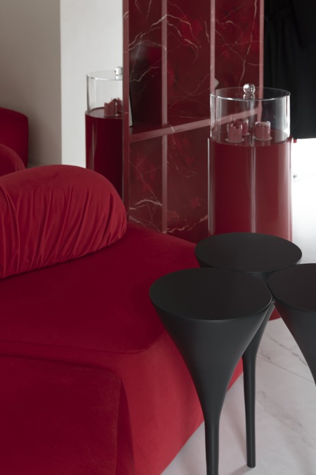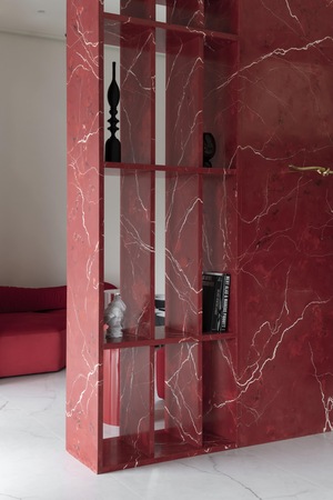The creation of red marble is both the pride and the challenge of our project. During the course of implementation, we encountered difficulties in achieving the desired shade, but the client was unwilling to abandon this material.