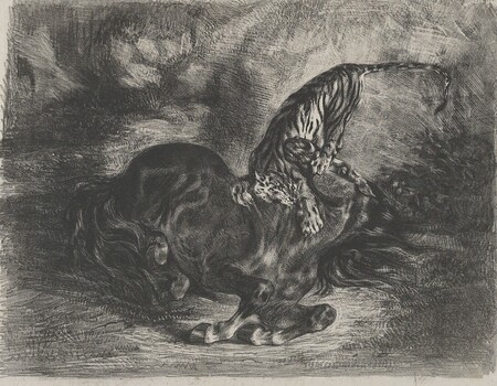 «Тигр нападает на дикую лошадь» — Эжен Делакруа (1828 год)