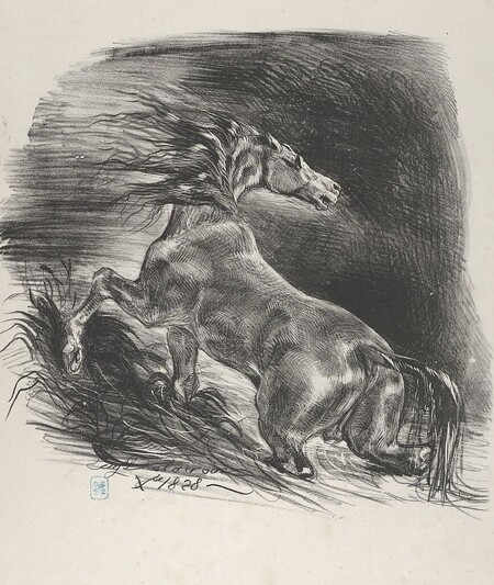«Дикая лошадь, выходящая из воды» — Эжен Делакруа (1857 год)// «Лев, пожирающий лошадь» — Эжен Делакруа (1844 год)