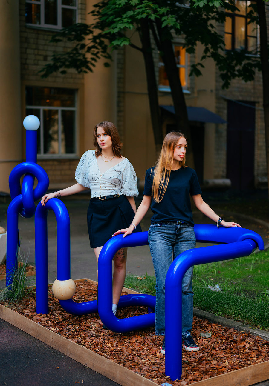 The main elements of the collection are tangle and knot art objects with «threads» scattered around the residental complex and intuitively guiding the user around the location.