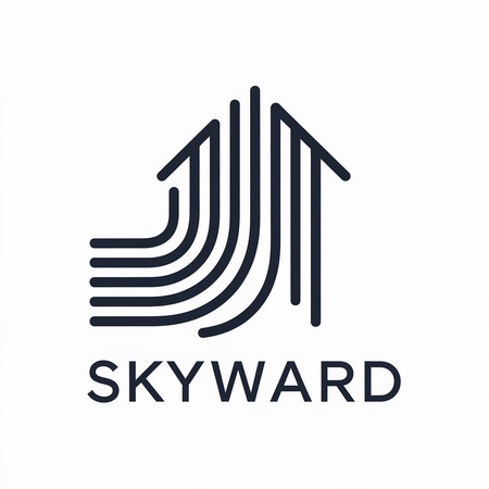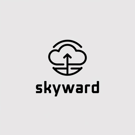 Vector minimalistic logo on white background for a brand of anti-gravity accessories with the name «Skyward» using clouds