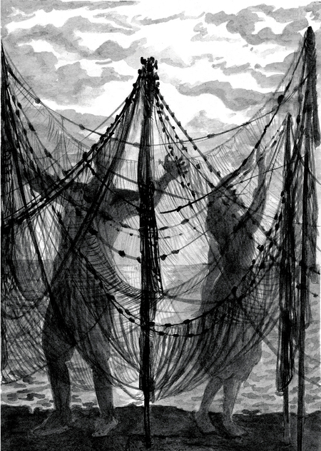 Пушкин адаптировал рыцарский роман к русскому народному эпосу, однако, в современном контексте поступки персонажей имеют сомнительную мотивацию, сами они утратили (а может никогда и не имели) налет героичности и вряд ли могут служить моральными ориентирами. Поэтому в моих иллюстрациях лица героев спрятаны, они лишь тени, двигающие сюжет.