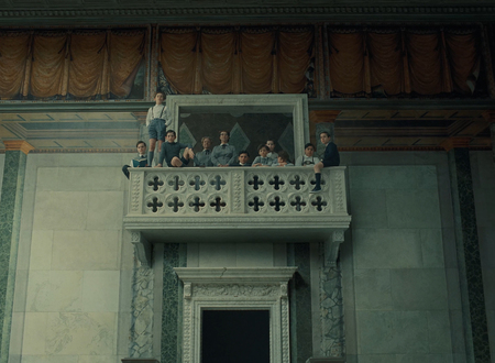 Центральное место в системе «особенного» занимает работа с композицией. Практически каждый кадр выстраивается по принципам строгой симметрии или осевого построения, превращая экранное пространство в театральную сцену. Статичные, тщательно срежиссированные планы создают эффект застывшего времени, делая опору на ключевую тему искусственного, контролируемого мира. Динамика вносится за счет использования плавных панорамных и тревел-съемок, которые выполняют функцию визуального проводника по кукольному пространству. Особого внимания заслуживает планиметрическая композиция, при которой камера располагается строго перпендикулярно к объекту съемки, сознательно усиливая сценичность и графичность пространства.