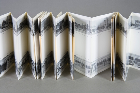 Каждый из этих «музеев» — собственный длинный аккордеонный разворот, на котором находится серия черно-белых фотографий.