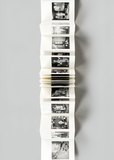 Физическая структура книги (узкий высокий формат, фальцы) и её развёрстка созданы так, чтобы зритель «погружался» в медленно развивающийся визуальный ритм снимков.