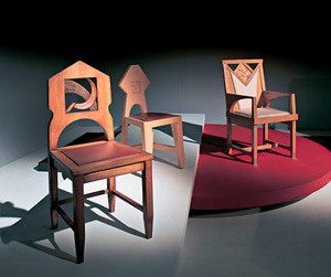 Пойдем дальше по хронологии создания: следующие проекты хоть и вошли в частные коллекции, но уже менее интересны с точки зрения формы. Их красочность, в отличии от стульев, достигается преимущественно за счет количества декора, дополнительных элементов.