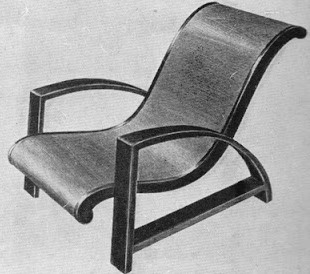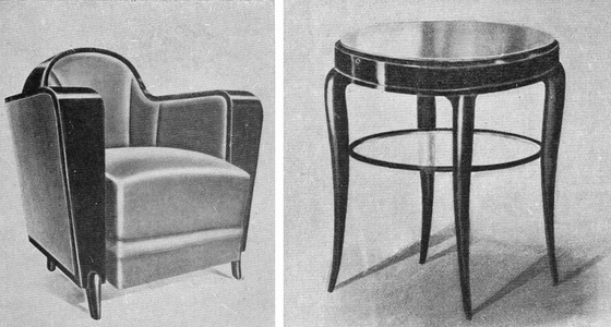 Кабинетное кресло, курительный столик (для клуба Наркомлегпрома), шезлонг (для комнаты отдыха бань Моссовета). Архитектурная мастерская Моссовета № 12. Середина 1930-х гг.