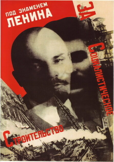 1. Густав Клуцис, «Выполним план великих работ», 1930 2. Густав Клуцис, «Под знаменем Ленина — за социалистическое строительство!», 1930