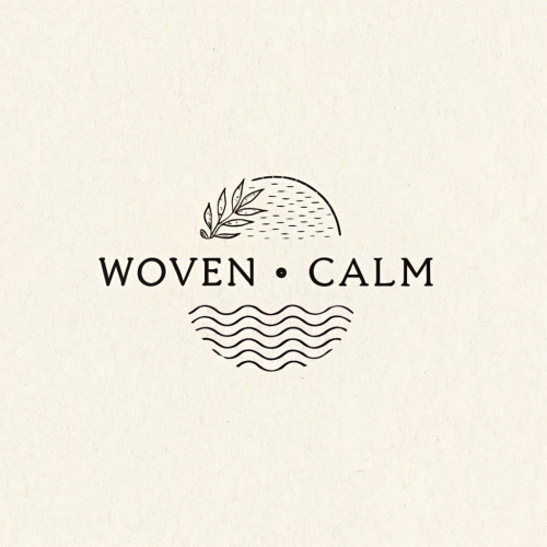 Мой промпт: Logo design for a women’s linen clothing brand called «Woven Calm.» The concept represents linen as a thread of balance, connecting women with earth and light. The logo should feel natural, soft, and elegant, with a calm, organic aesthetic. Incorporate subtle nature-inspired elements — such as flowing lines, thread-like textures, sun, leaf, or gentle wave motifs. Use a minimalist and modern design style with warm neutral tones (beige, sand, light gray, muted green). Typography should be refined, feminine, and harmonious, possibly in a serif or handwritten font that evokes serenity. Overall mood: peaceful, grounded, airy, timeless.