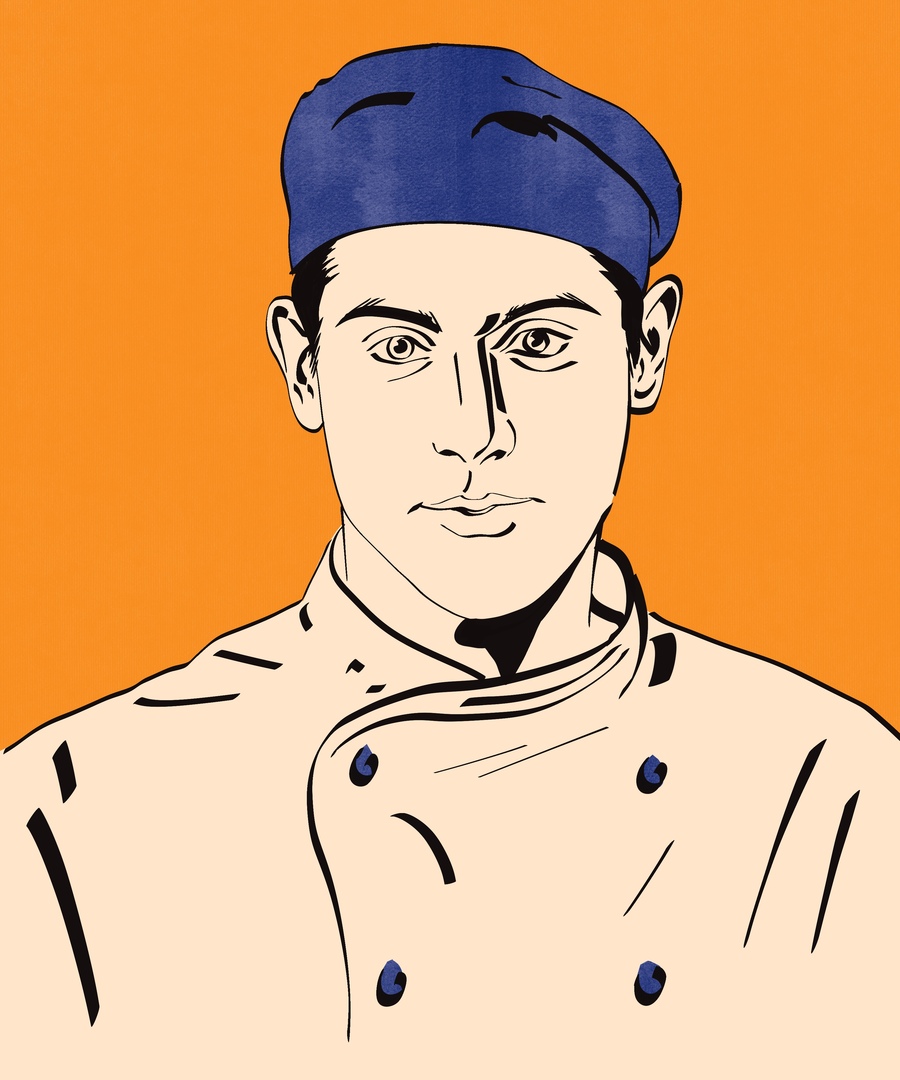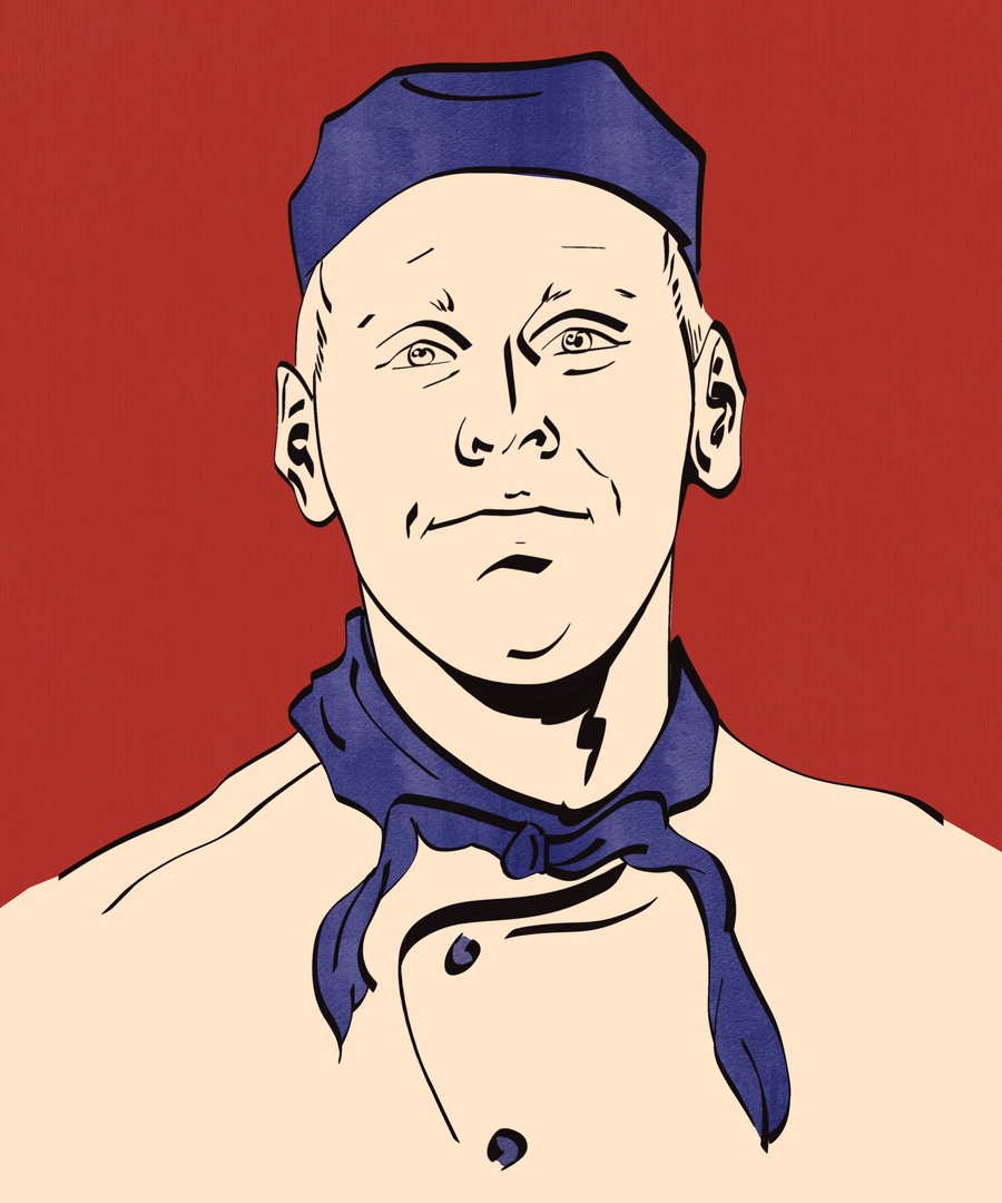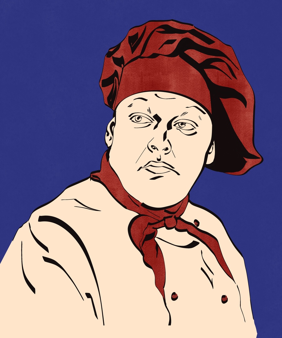 Иллюстрации персонажей сериала «Кухня» в минималистичной графической зарисовке, напоминающие небольшие экспромты из меню, может быть даже французского