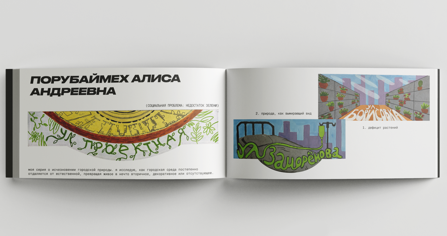 Моя тема — исчезновение городской природы. Я раскрываю проблему вырубки деревьев и постоянной застройки, когда живые пространства заменяются бетоном, высотками и плотной инфраструктурой. Мне важно показать контраст между природой, которая когда-то была частью города, и искусственной средой, которая её вытесняет.