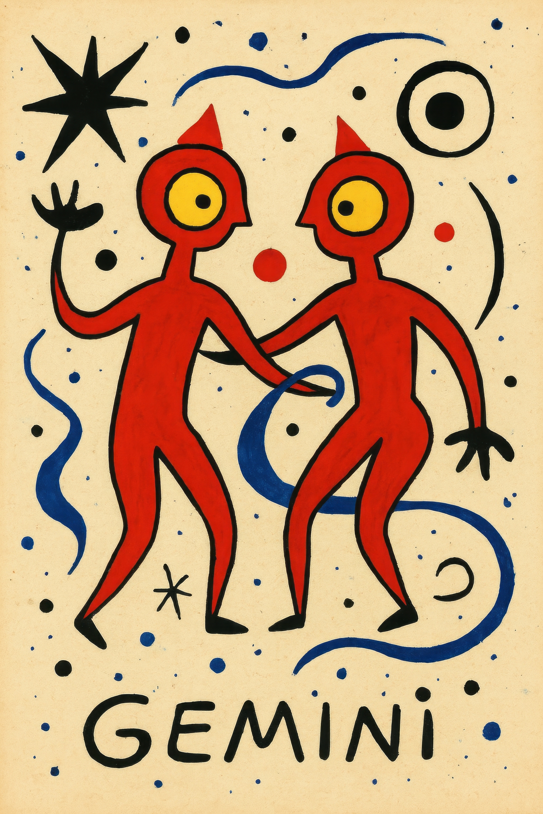 Рождённым под знаком Близнецов свойственны подвижность и непостоянство. Они отличаются острым, любознательным умом, стремлением к обмену информацией и новым знакомствам, ради которых находятся в непрерывном движении (в чём, как правило, не знают себе равных). Близнецы остроумны и обаятельны, но с легкостью меняют фокус своего внимания. Они прекрасные собеседники и посредники, однако испытывают потребность в интеллектуальной стимуляции и свободе самовыражения.