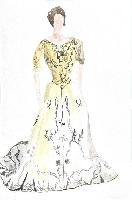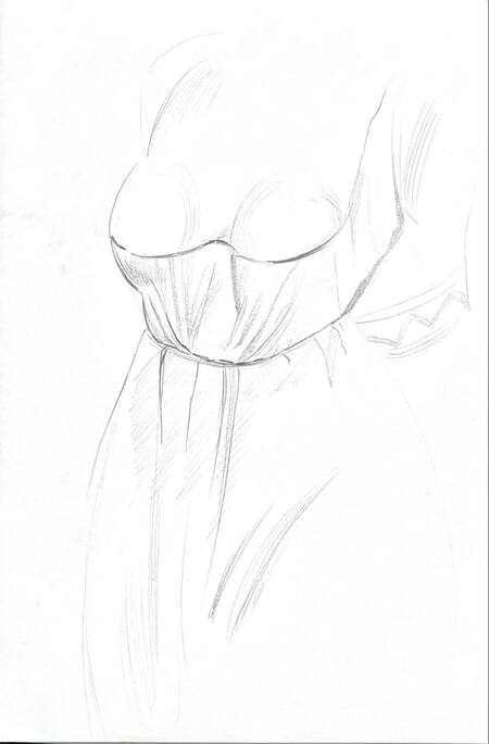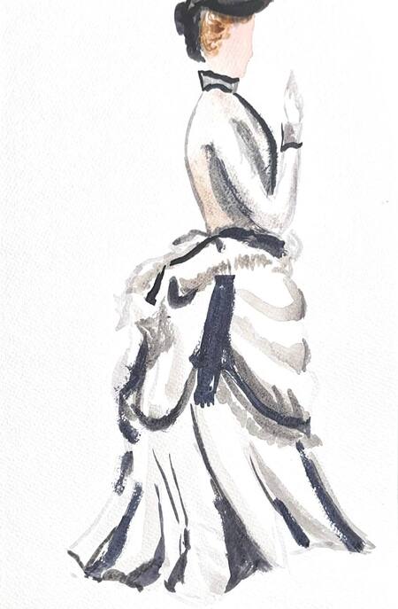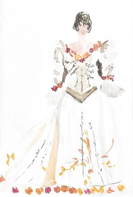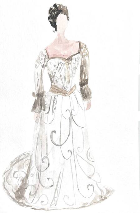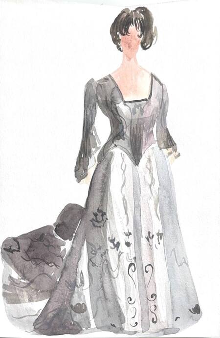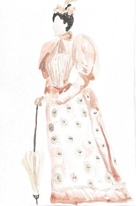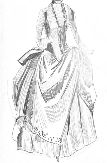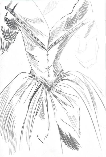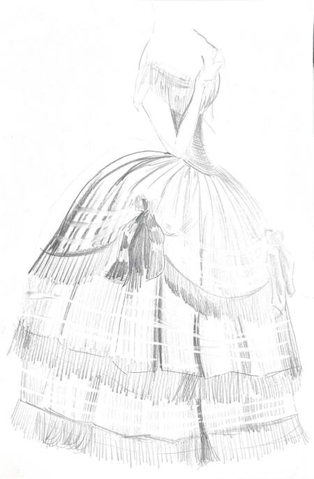 1-й блок направлен на изучение и прорисовку костюма или предмета костюма по КП в различных графических приемах, стилях, идеях