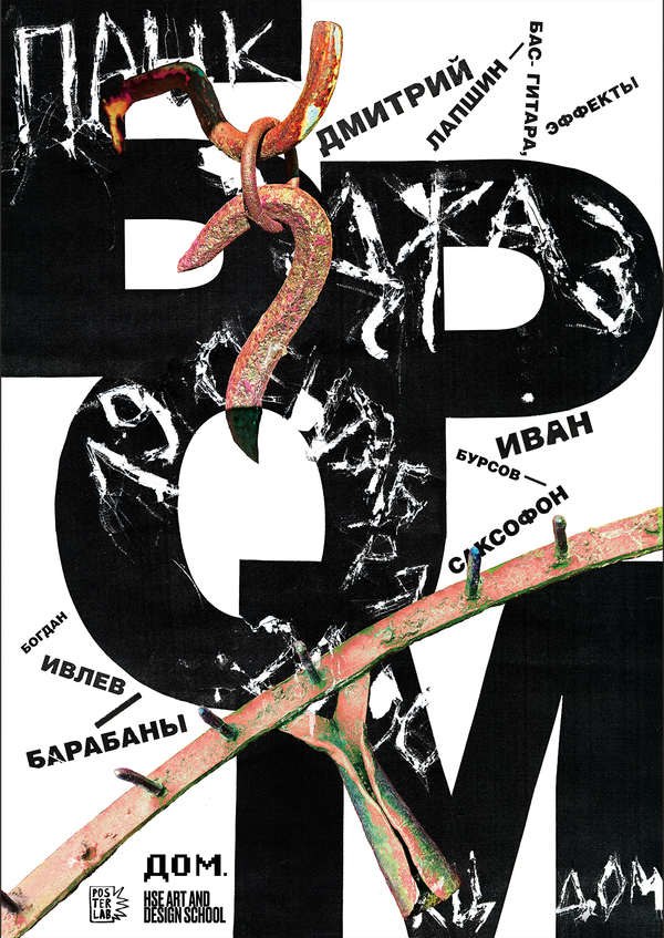 The concept of a poster for the BROM music group is built around the word «scratch» that transmits the energy punk jazz: sharpness, roughness, resistance. The scratched letters are visualizing the sound, and the rusty hook and burglaries are a form of destruction and a raw invoice. Small printing is embedded in the shape of the teeth, giving a rhythm and increasing the sense of tension — as is the aggressive, experimental, but united music of the band.