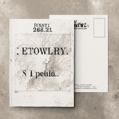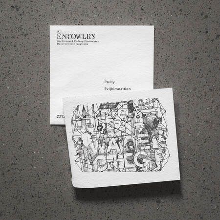 Промт: Architectural postcard for ENTOWLRY, geometric typographic design, using colors