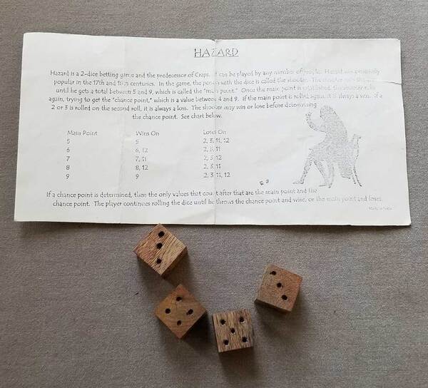 «Хазард в той или иной форме восходит, по крайней мере, к эпохе Средневековья, и его вариации оставались самыми популярными играми в кости в Европе вплоть до середины 1800-х годов» [2]. Можно сказать, что хазард являлся неким гибридом Alea и Agon. Несомненно результат бросания костей основывается только на случайности, но система расчета вероятности различных комбинаций вносила небольшой элемент состязания в расчете рисков и принятие стратегических решений о размере ставок.