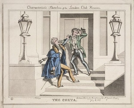 Игра в Крокфордском клубе, граф д’Орсе объявляет Маин/ Рис Хауэлл Гроноу/ 1843 // Двое пьяных гуляк на ступенях Крокфорд-клуба/ Джон Филлипс/ 1829